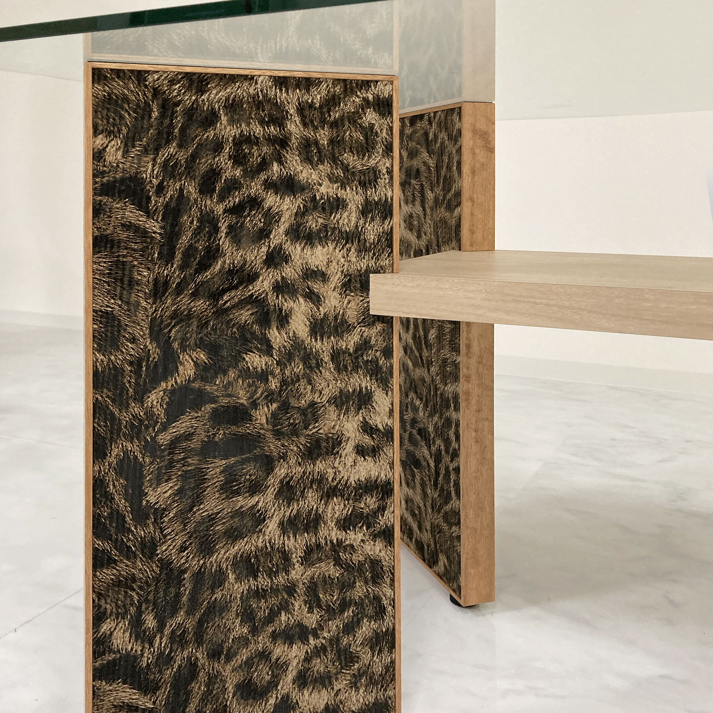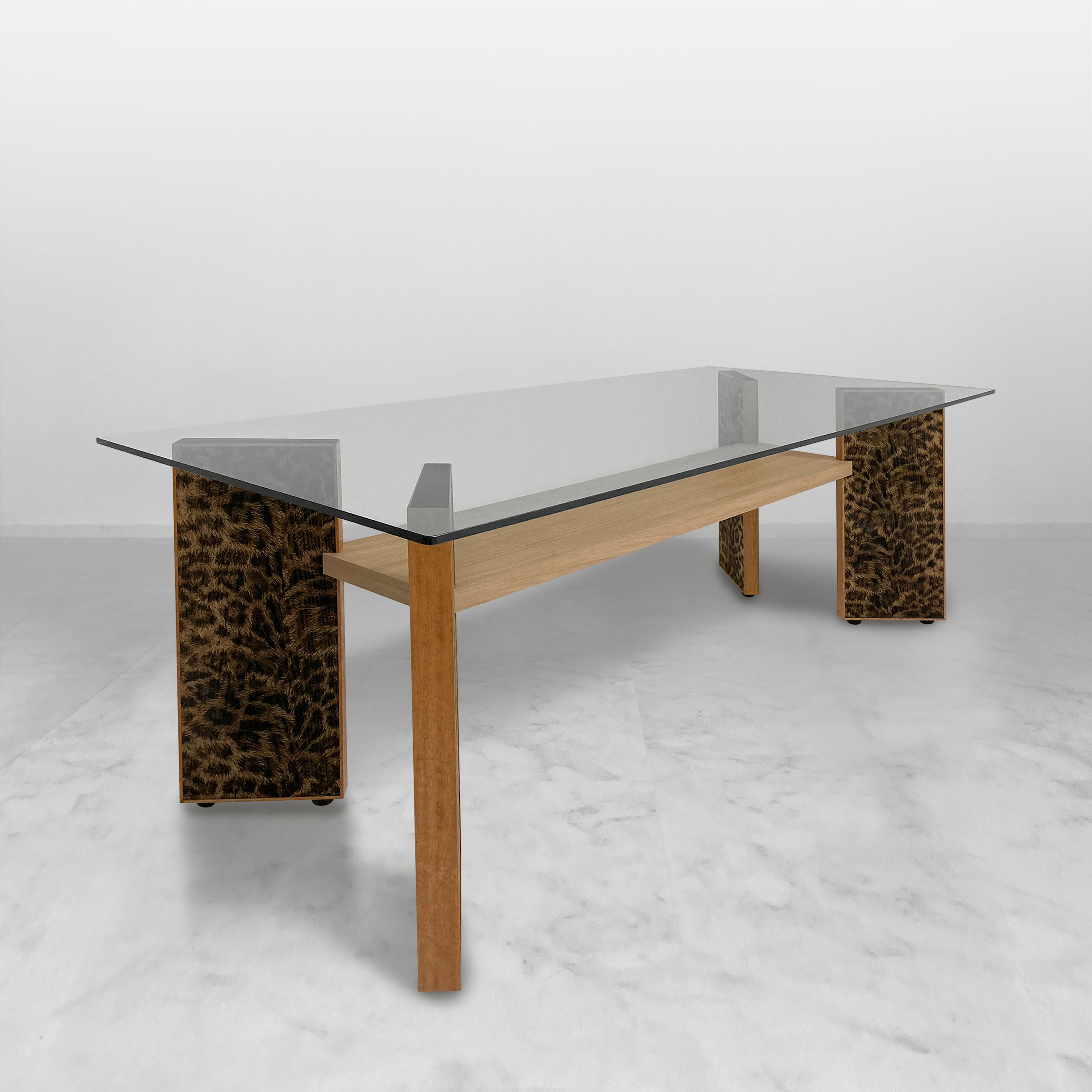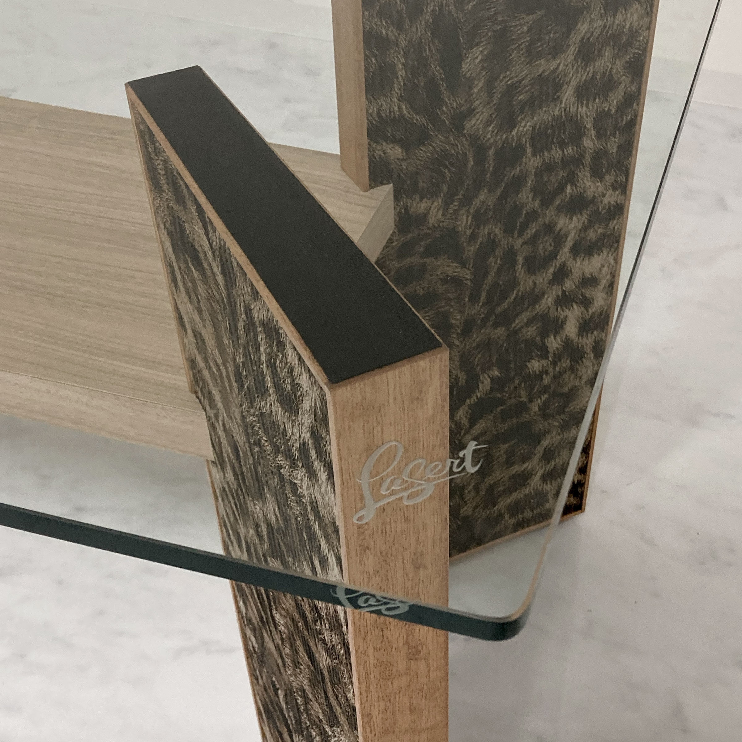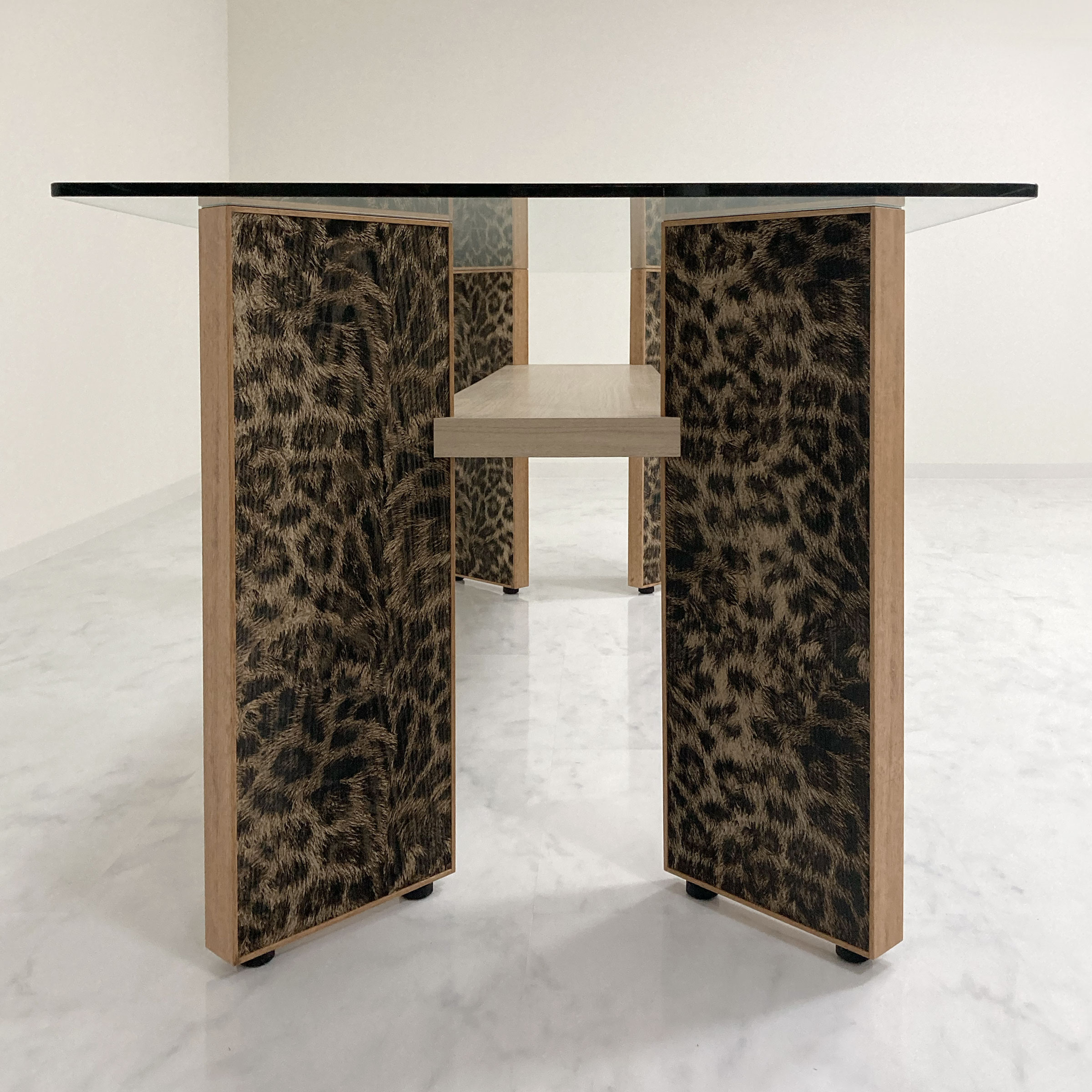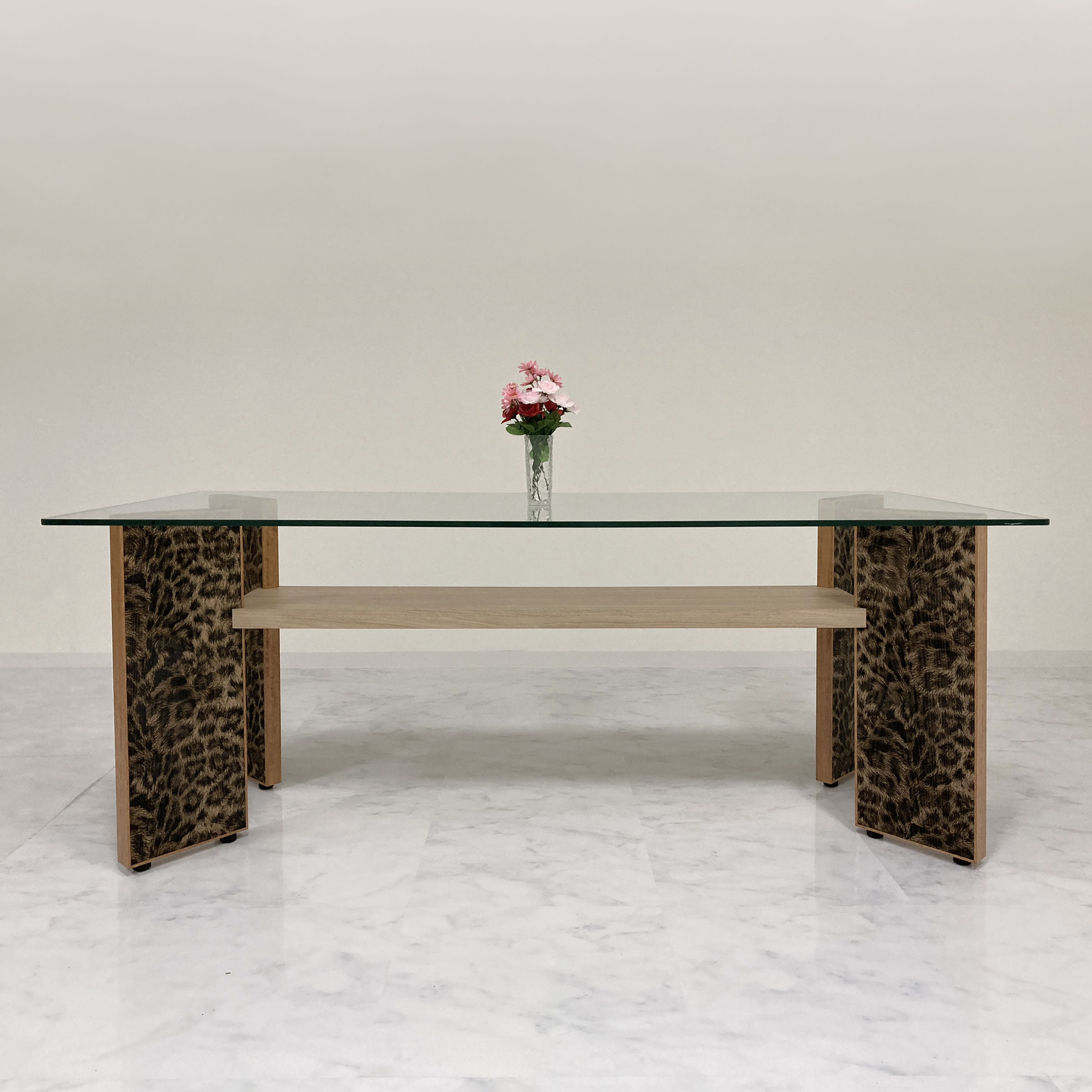 日本 | ●天板:強化ガラス t12 ●中板:メラミン化粧板・ポリ合板 ●レーザート脚:レーザート天然木 t7 |